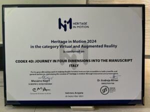 Il progetto “Codex 4D: Viaggio in quattro dimensioni nel manoscritto” ha vinto il primo premio della competizione internazionale “Heritage in Motion Awards”