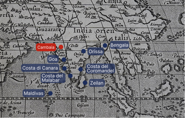 Cambaia è una città indiana nel Gugerat, al limite settentrionale del golfo di Kambāya, che separa la penisola indiana da quella di Kathiawar.