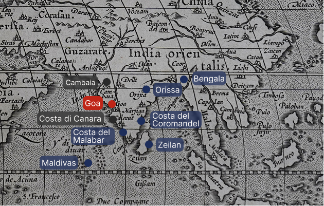 “(…) in mare con due bocche, tra le quali si fa un'isola dove è posta la città di Goa […].